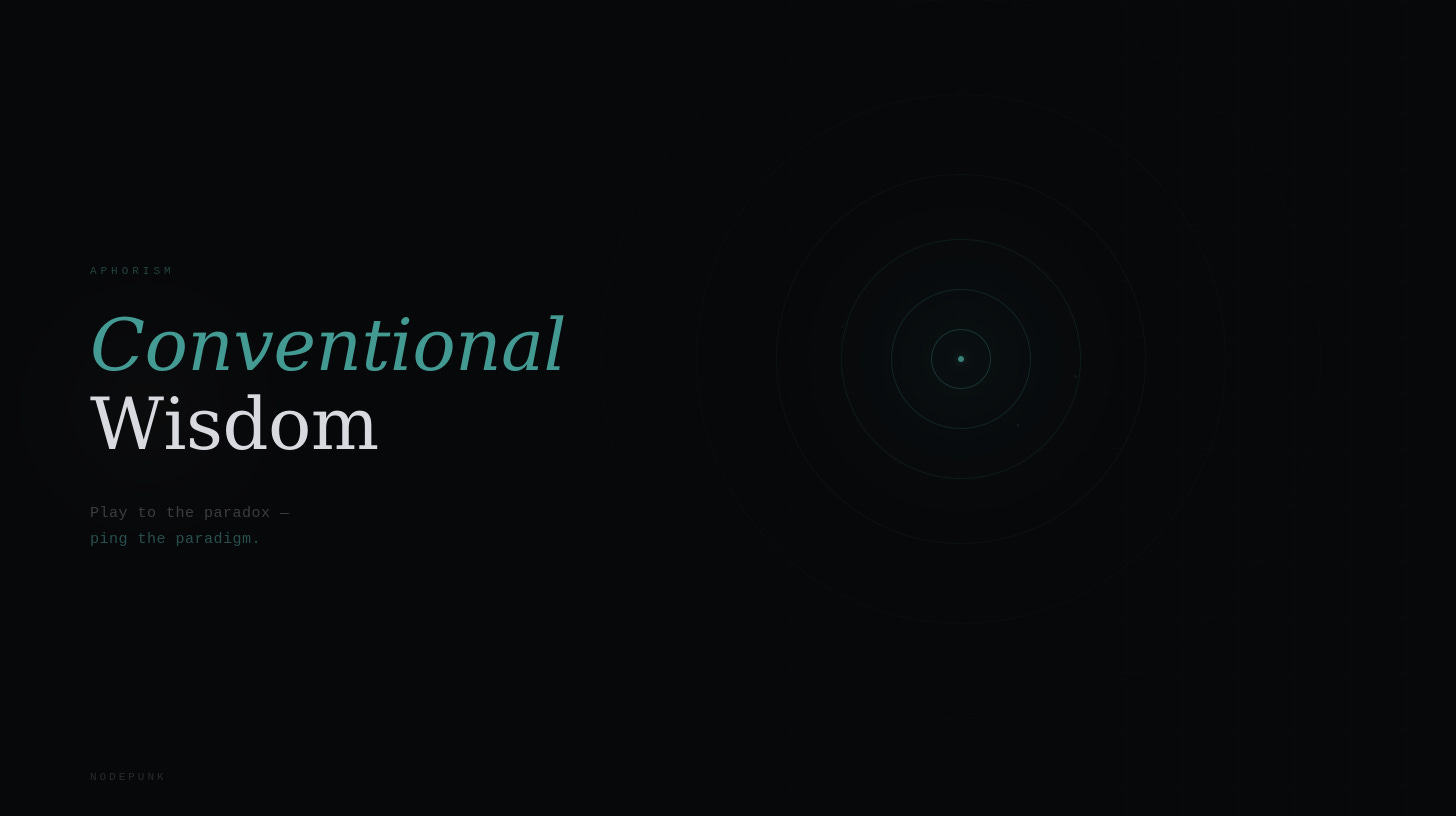 Conventional WisdomnodepunkJul 24, 20241ShareConventional wisdoms undergo a paradigm shift as they adjust to innovation and disruption. Play to the paradox—ping the paradigm.PreviousNext