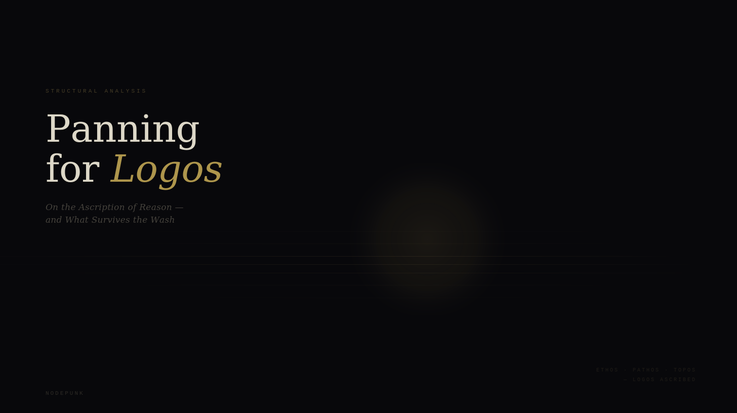 It was always ethos and pathos producing the topos from which logos is ascribed — and beneath which it is then subscribed, as though it had been the ground all along. But the actual ground was always deeper. Intent. The directed flow that no amount of panning washes away, because it is the river itself.